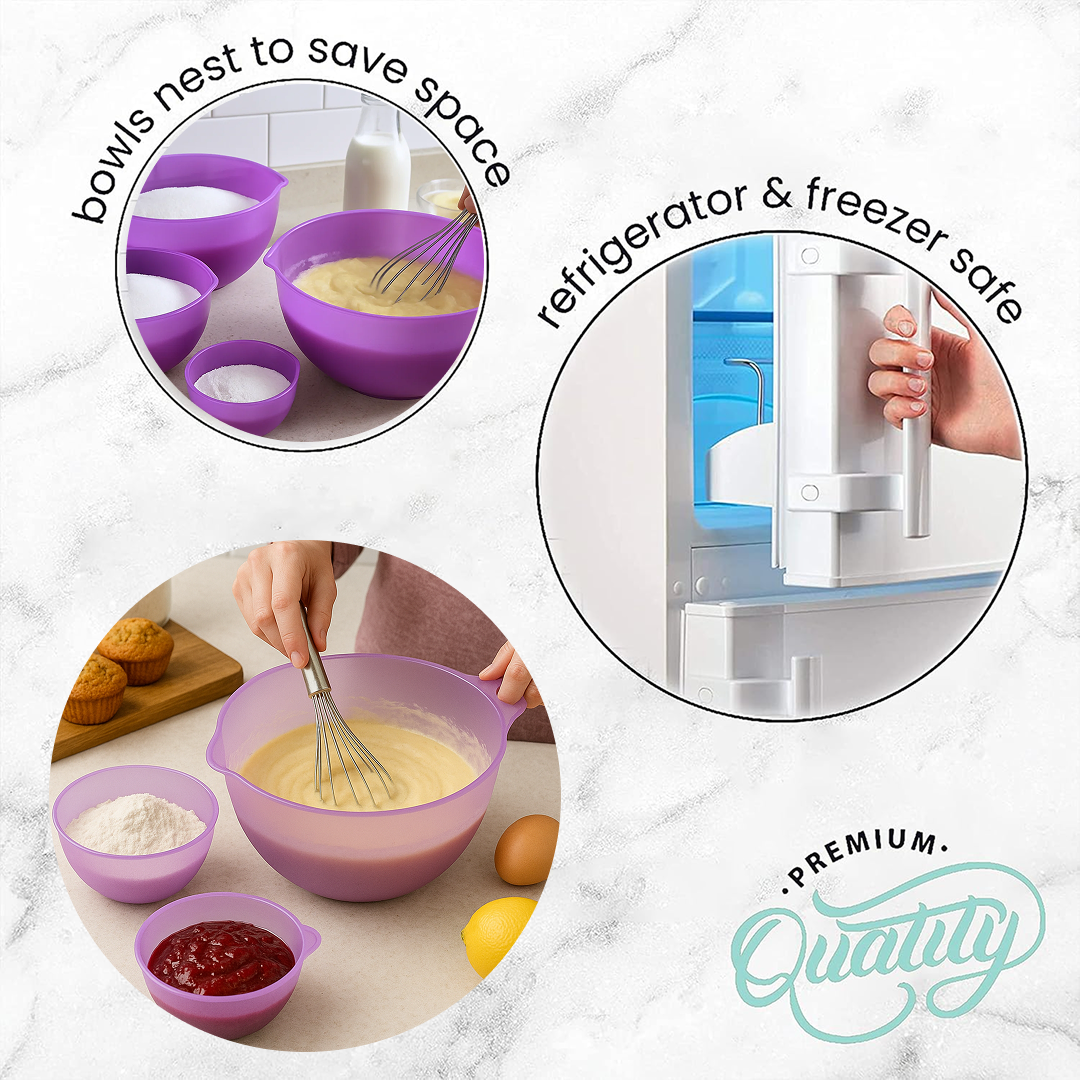 3 Different Sizes: Includes three nesting bowls in small, medium, and large capacities for various prep needs.