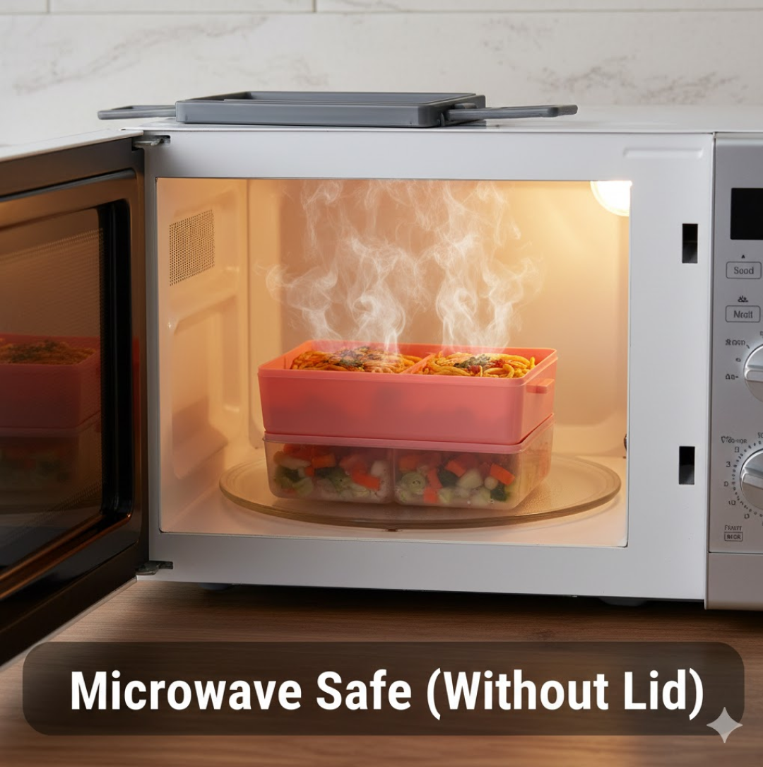 Plastic 2 Layer Leak Proof 3 Compartment Lunch Box for Office (1 Pc)