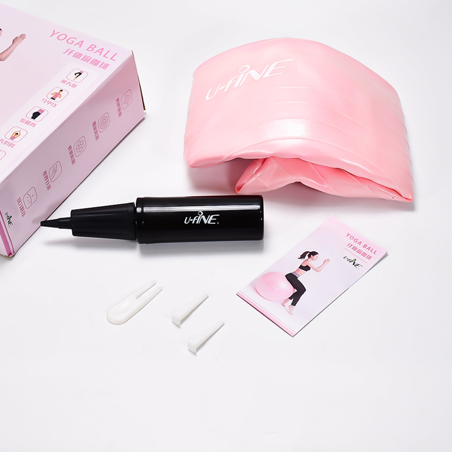 - This gym ball is very compact and lightweight which makes it perfect for storage and travel. Just deflate the ball when not in use and you can carry it anywhere. The Joyfit yoga ball comes with a quick, inflation air pump to easily inflate .Your stability ball is delivered deflated and can be pumped up in minutes with minimal effort.The easy to use features of the Joyfit Gym Ball makes it perfect for all men, women and the elderly.