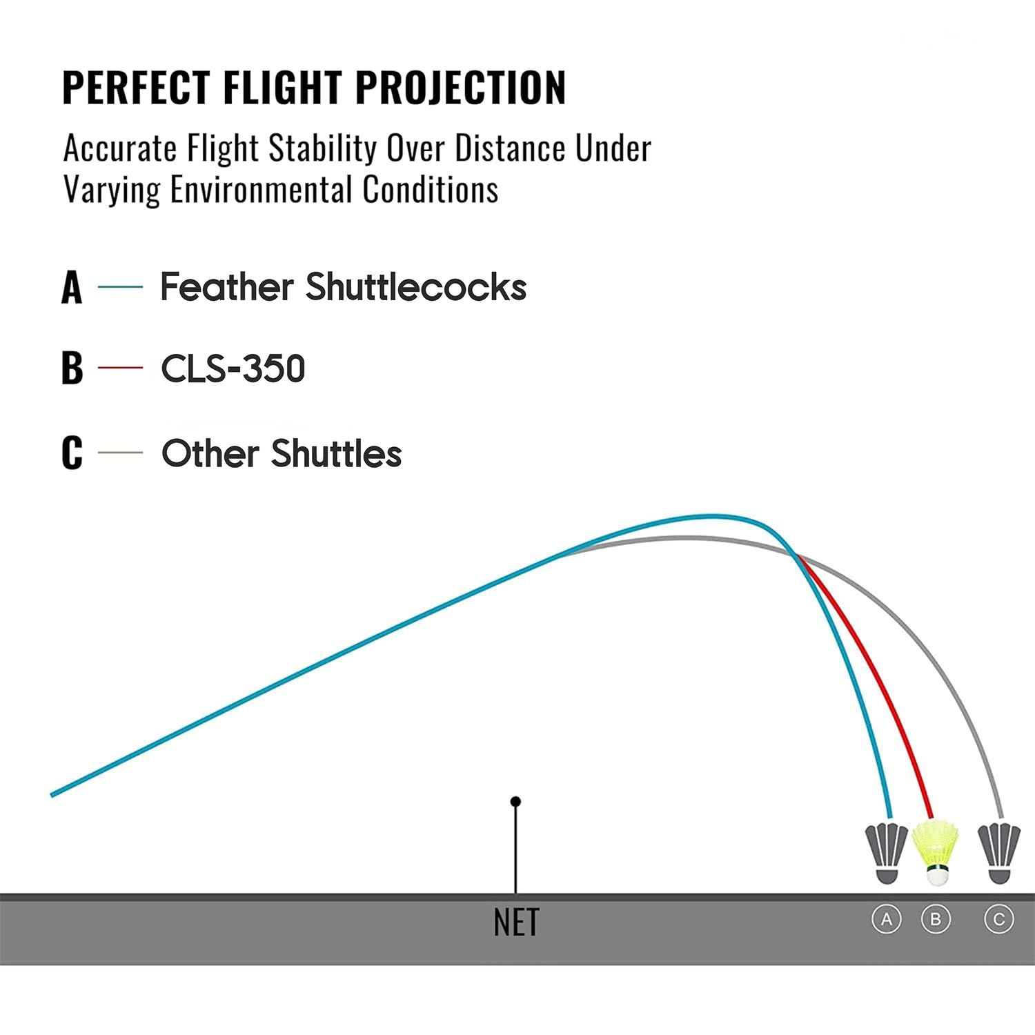 • Shuttlecocks are made of Plastic with a stout and straight centre rod; straight Plastic give superior and stable flight