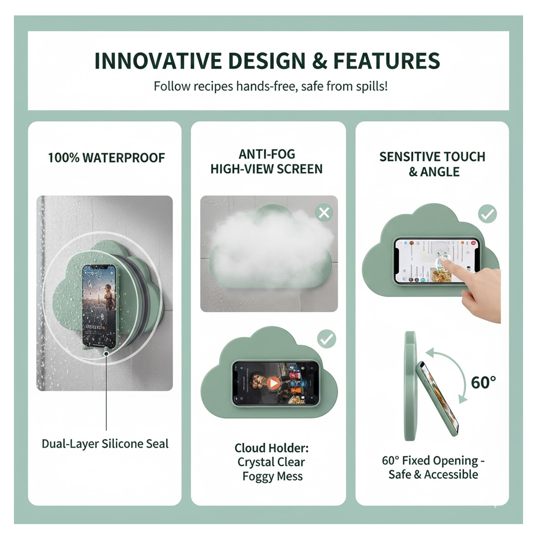 - Recommended for baths and kitchens: With a fixed angle of 104 °F (45 °C), it is convenient to put it in somewhat when you are doing it. This design prevents your smartphone from accidentally opening the case and dropping it.